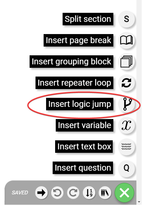 注:ロジックジャンプはいくつかの設問をスキップするために使用されるのではなく、数セクション飛ばす等、大きく移動させたい場合に使用するのが良いでしょう。
