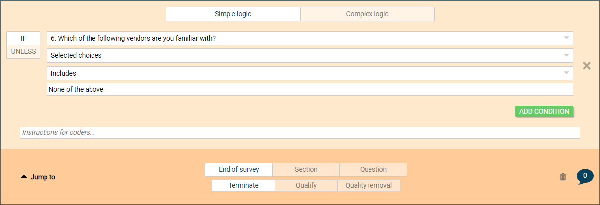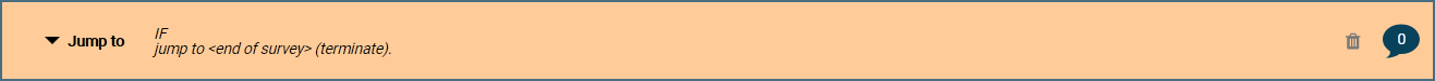 ロジックジャンプは回答者を移動させるために使用されます。多くの場合、サーベイを終了させるために使用されますが、特定のセクションや質問にジャンプするために使用することもできます。