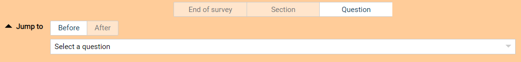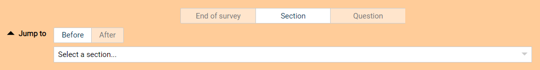注:セクションや設問へのジャンプについては、そのセクションまたは設問の前または後にジャンプするかを選択できます。
