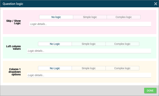 조합 질문을 위해 사용 가능한 로직 설정은 다음과 같습니다.