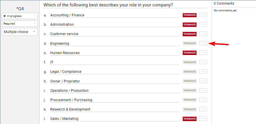 下面的示例是一个多项选择题。在每个选项的右侧,有一个提供附加功能的 3 点(...)菜单。