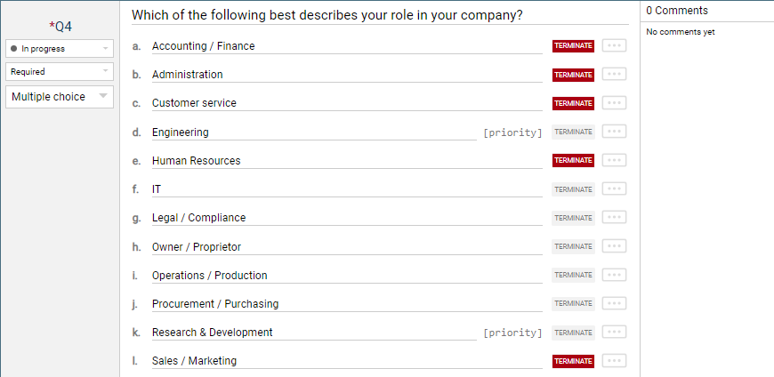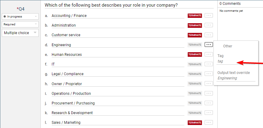 您可以使用标签(tag)将同类选项组织在一起,也可以通过标签,向您的问卷团队提供有关选项的附加信息。