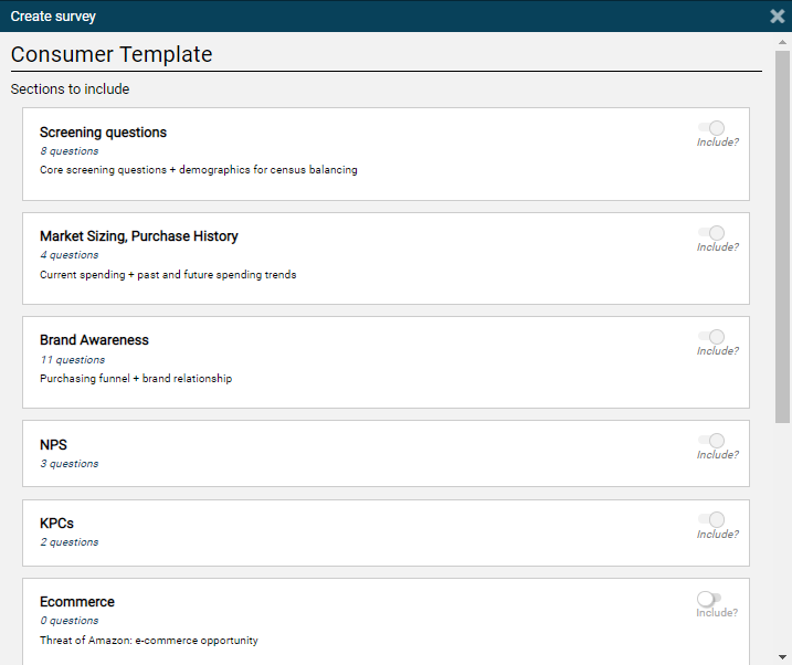 4) 如果您选择使用模板菜单,请选择要包含的题块部分(Sections)。