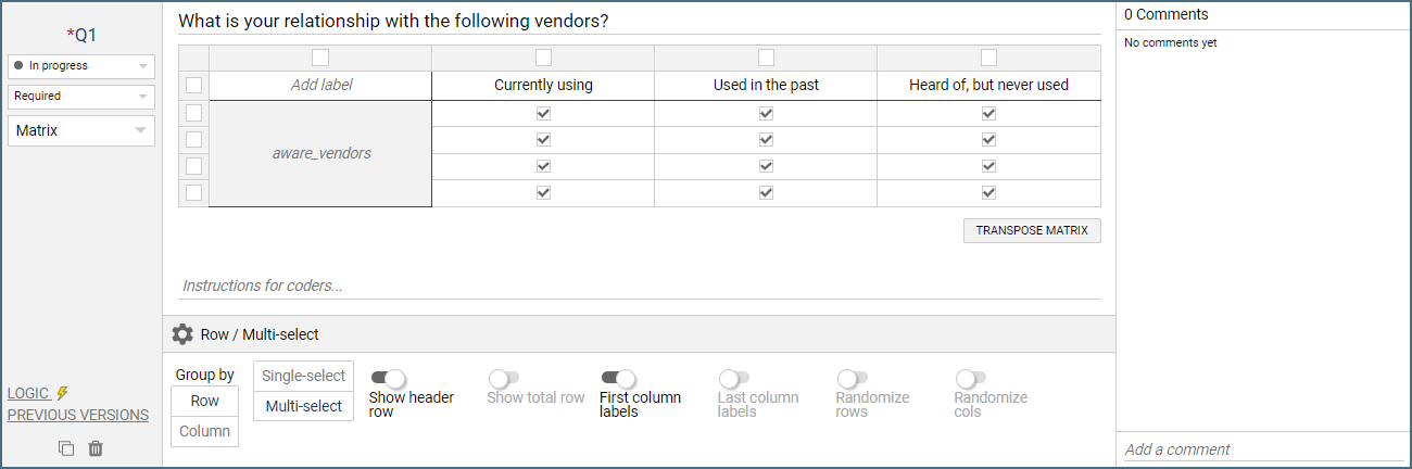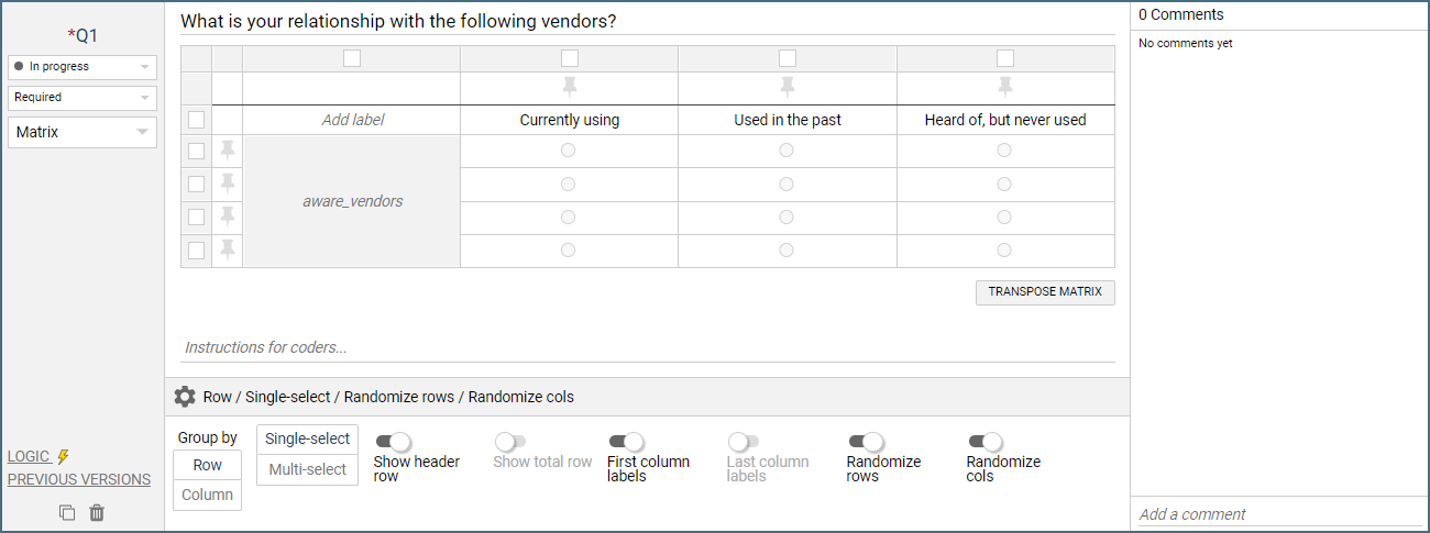 Pipe-in left column (插入左列) - 从上一个问题或变量中提取信息以填充矩阵的第一列。注意:仅在启用第一列标签(First column labels)时可用