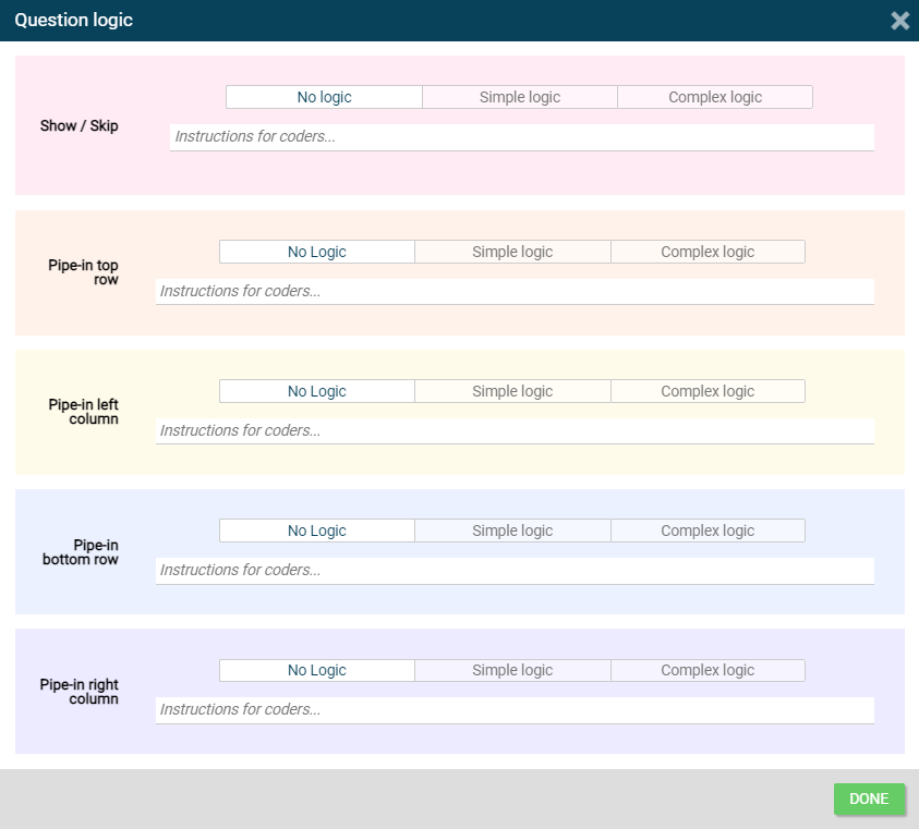 Pipe-in right column (插入右列)- 从上一个问题或变量中提取信息以填充矩阵的最后一列。注意:仅在启用最后一列标签(Last column labels)时可用